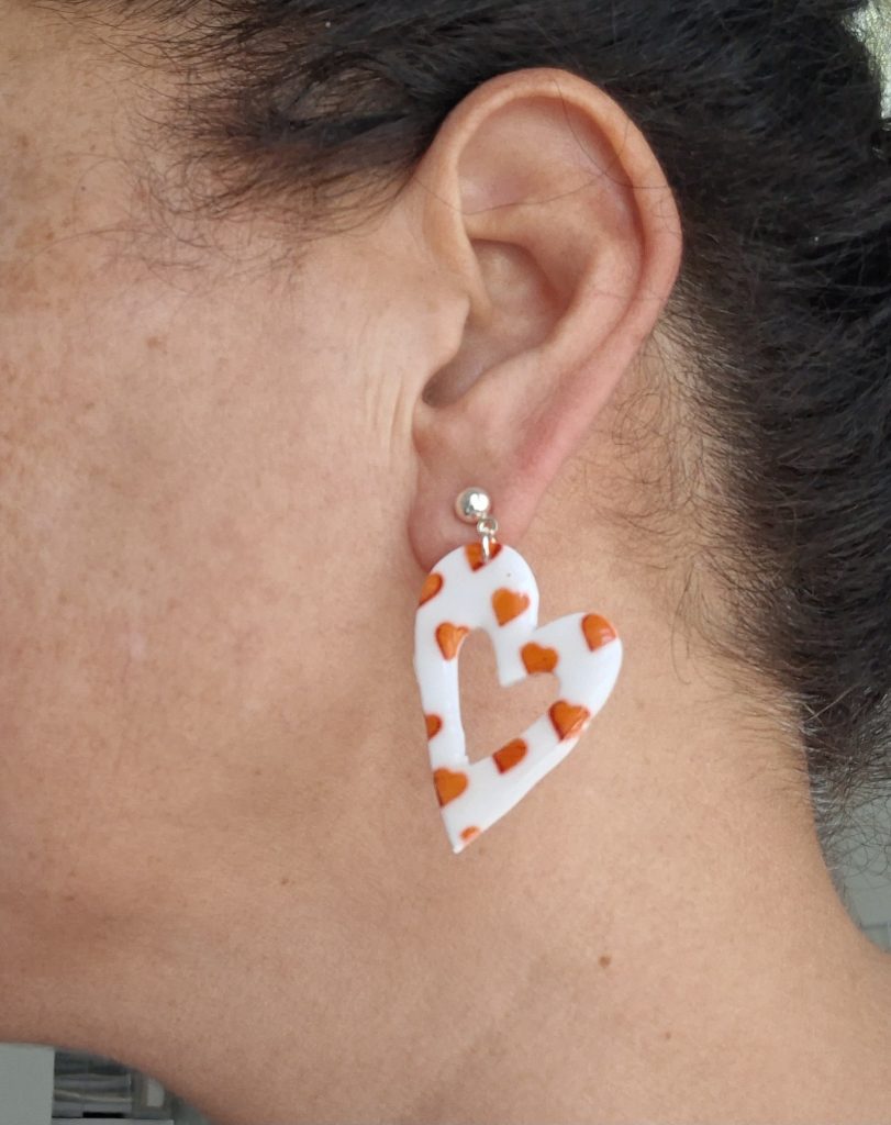 Aro con diseño de corazón inclinado, puede ser pegadito a la oreja o con un pequeño colgante (según disponibilidad)